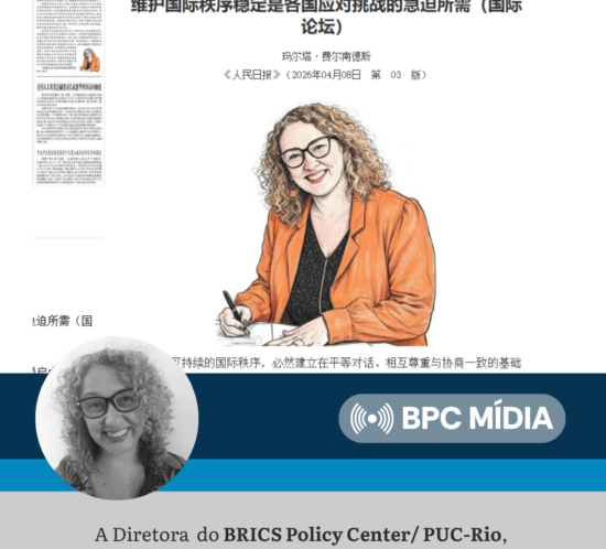 O jornal chinês People’s Daily publicou uma entrevista com Marta Fernández, diretora do BRICS Policy Center/PUC-Rio, sobre os desafios da ordem internacional contemporânea. Na análise, destaca-se a centralidade do multilateralismo, a...