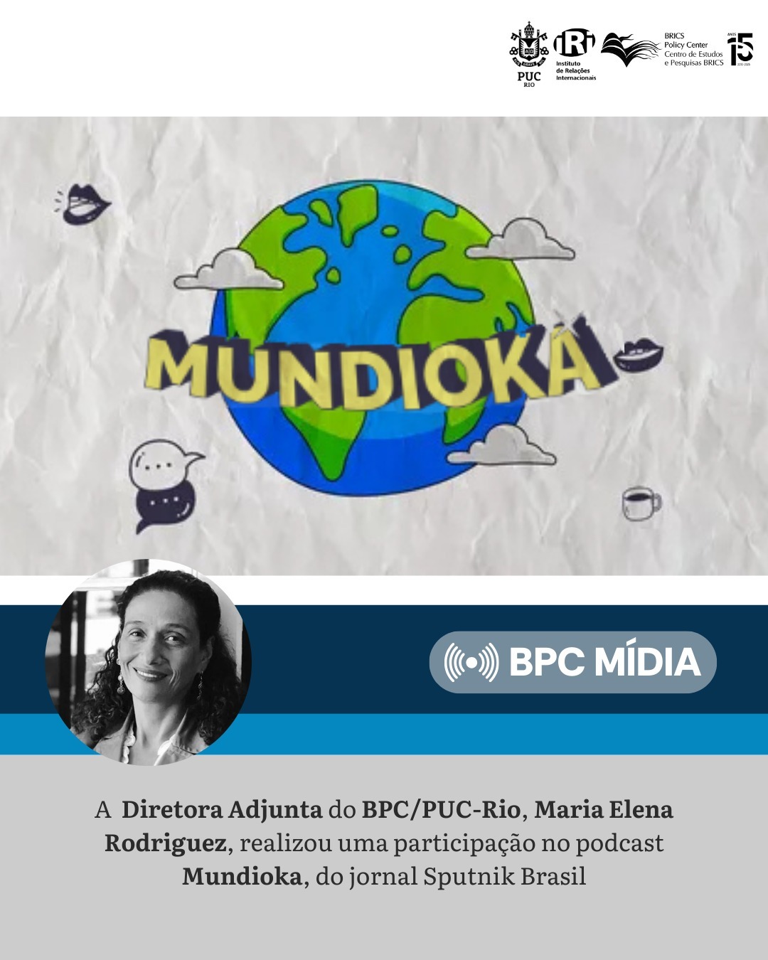 A diretora adjunta do BRICS Policy Center/PUC-Rio, Maria Elena Rodriguez, participou do podcast Mundioka com o tema “Banco do BRICS financia hospital de alta tecnologia no Brasil: iniciativa pode ser replicada em outros países do grupo?”