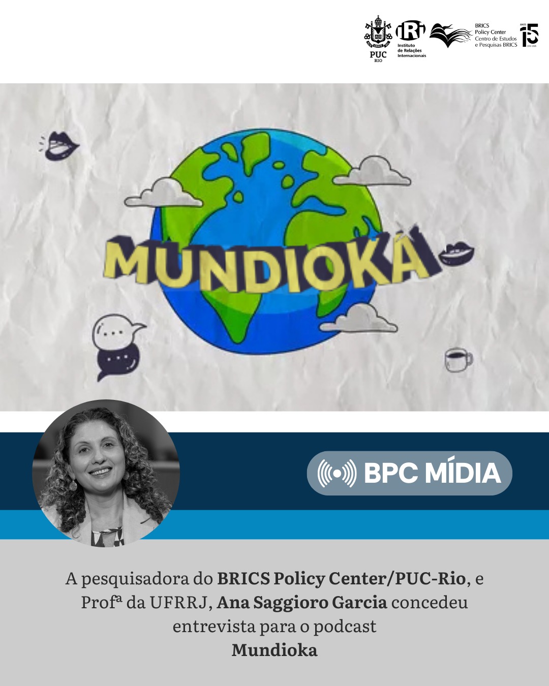 A Profª da UFRRJ e pesquisadora do BPC/PUC-Rio Ana Garcia concedeu entrevista para o podcast Mundioka, do jornal Sputnik Brasil