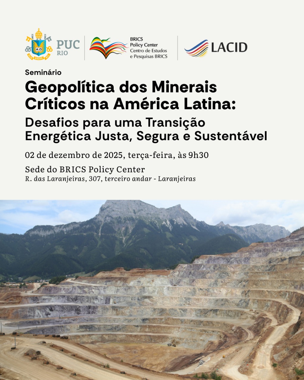 BRICS Policy Center (PUC-Rio) convida para o Seminário “Geopolítica dos Minerais Críticos na América Latina: Desafios para uma Transição Energética Justa e Sustentável”