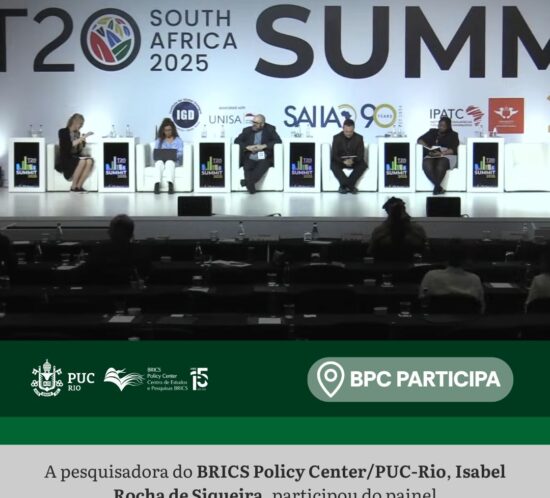 BRICS Policy Center/PUC-Rio researcher Isabel Rocha de Siqueira participated in the panel “Where next? Future directions for equitable and inclusive digital transformation,” held during the T20 Summit South Africa. The panel...