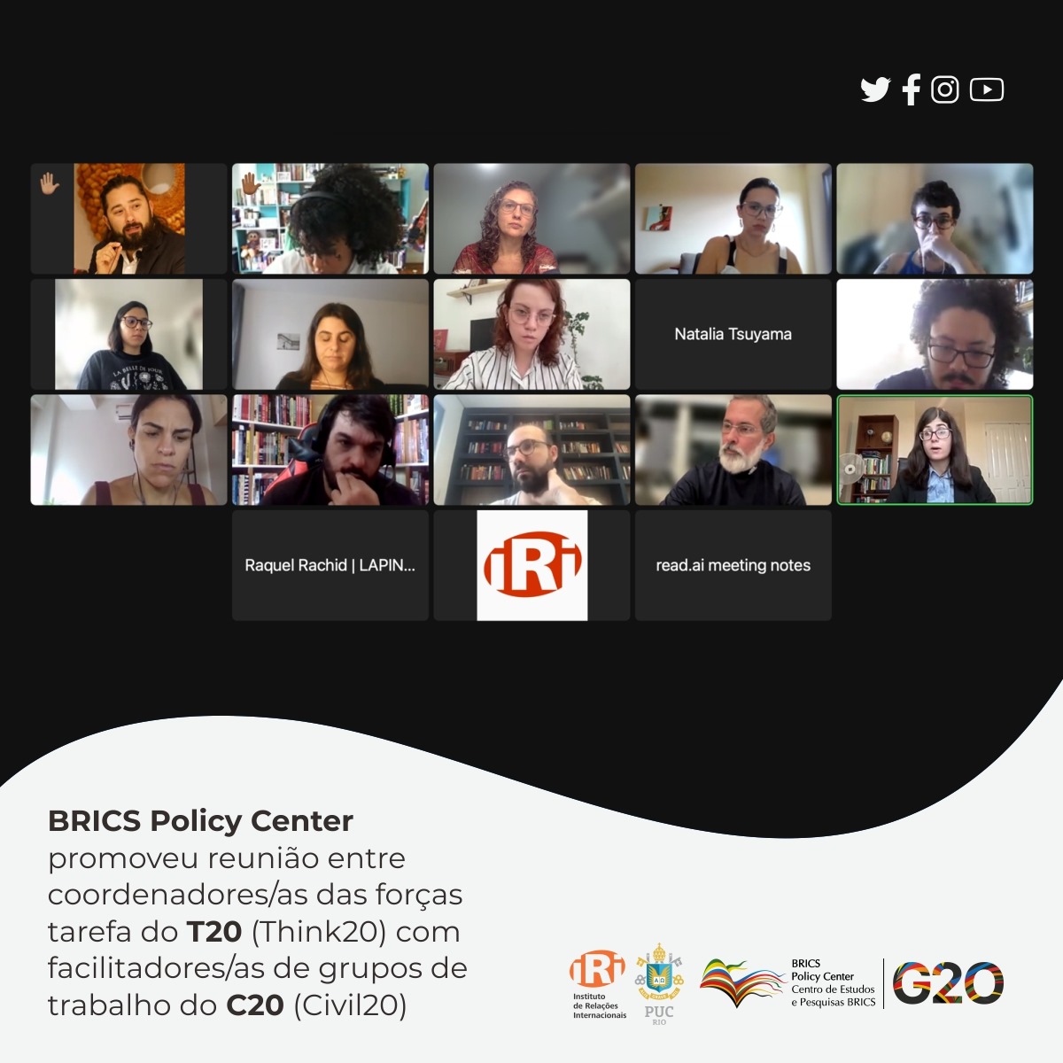BRICS Policy Center promoveu reunião entre coordenadores/as das forças tarefa do T20 (Think20) com facilitadores/as de grupos de trabalho do C20 (Civil20)