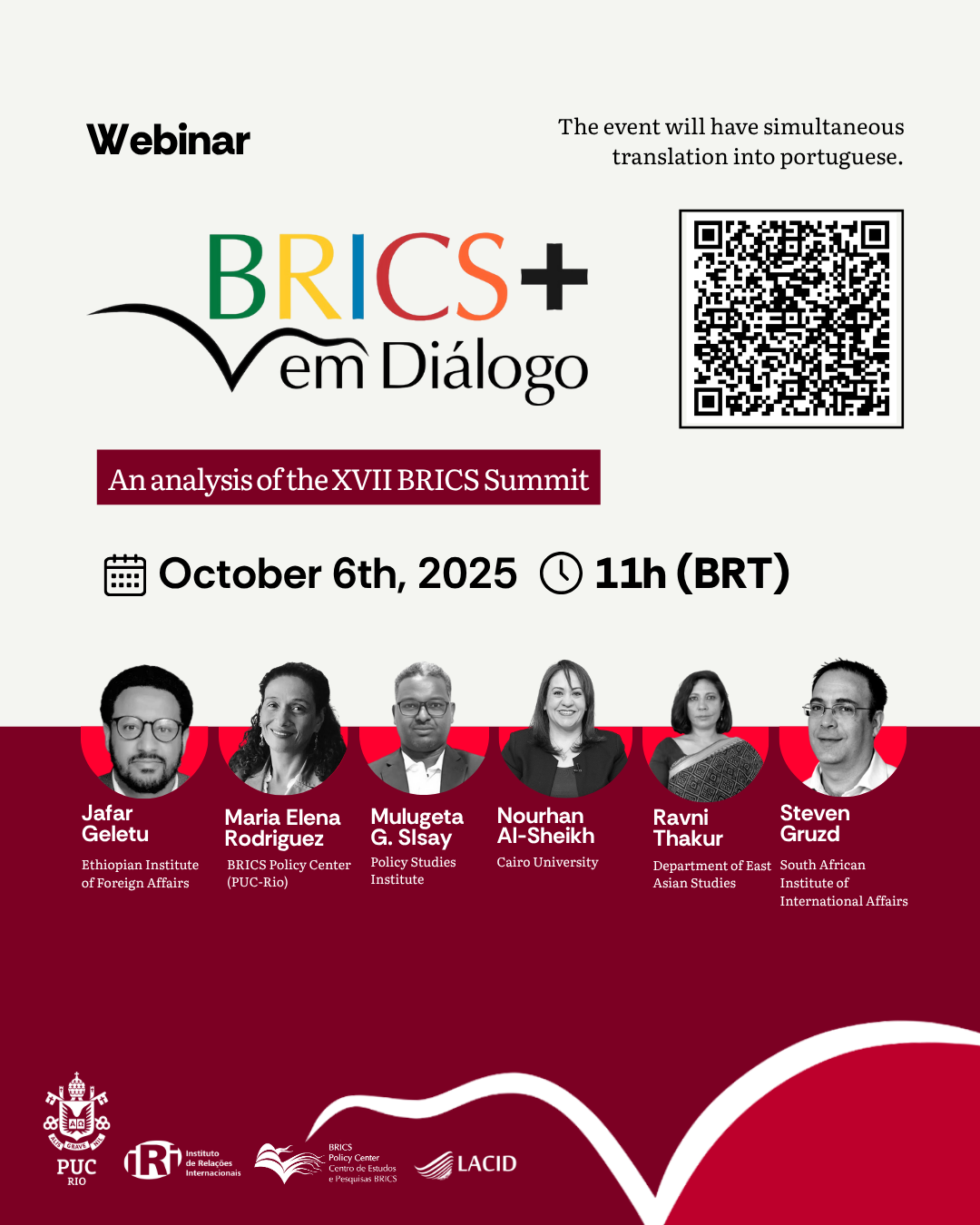 On Monday, October 6th, the BRICS Policy Center/PUC-Rio will hold a new edition of the “BRICS+ in Dialogue” Webinar, with the participation of experts from India, Ethiopia, Egypt, Brazil, and South Africa.