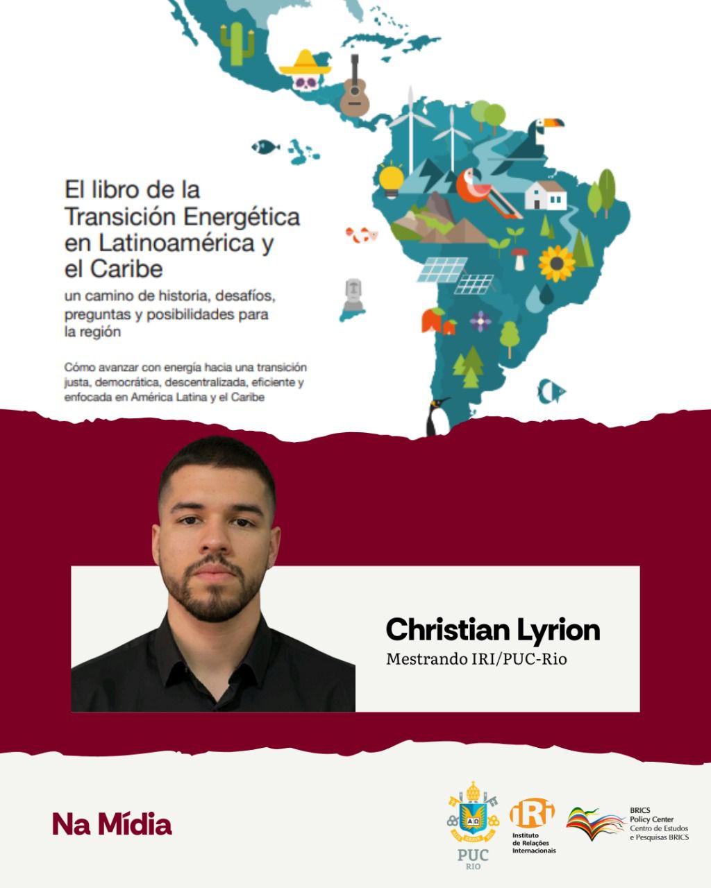Christian Lyrion de Barros Fontão, a master’s student at the Institute of International Relations at PUC-Rio (IRI/PUC-Rio) and a research assistant at LACID, part of the Brazilian Policy Center (BPC/PUC-Rio), co-authored the book “El libro de la Transición Energética en Latinoamérica y el Caribe.”