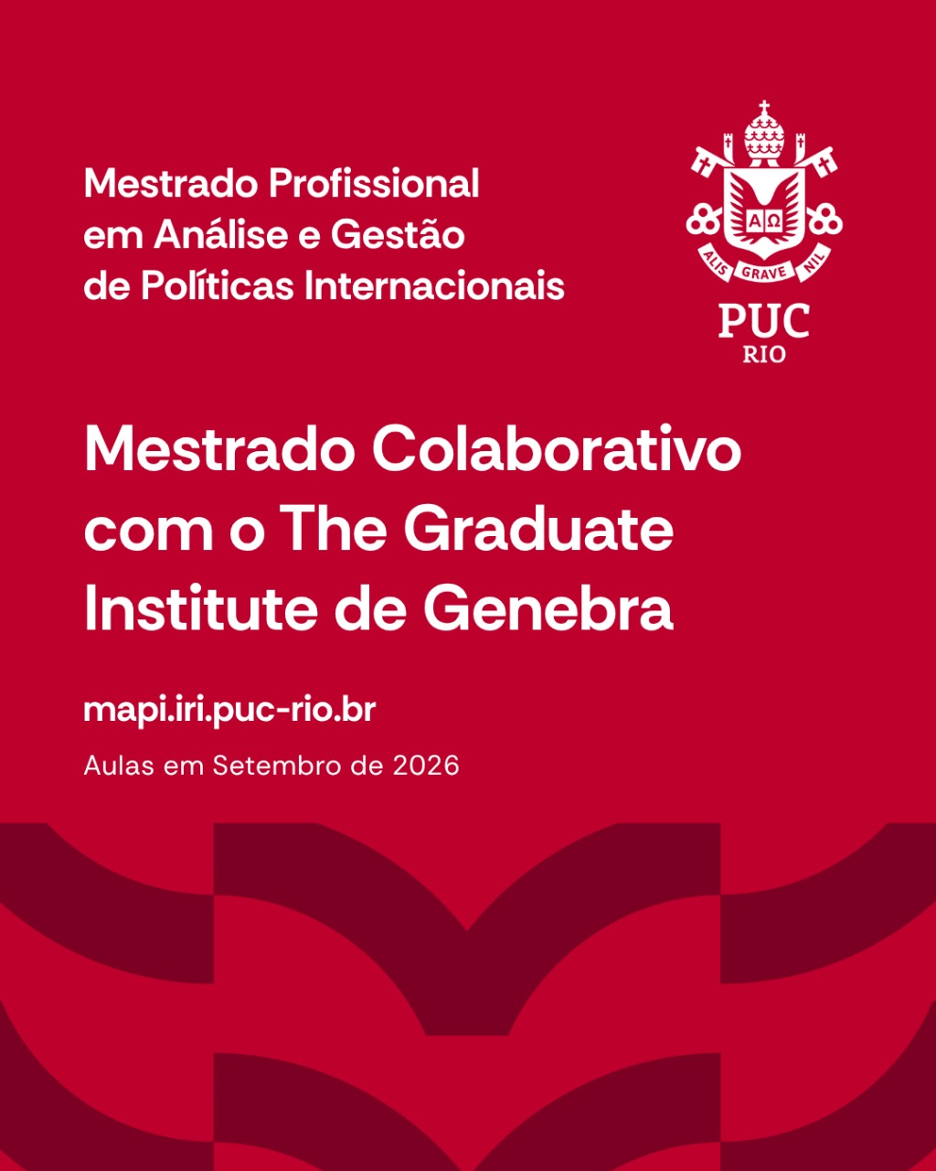 The MAPI selection notice for two (2) places at The Graduate Institute – Switzerland is open until December 8, 2025. The program is a partnership between PUC-Rio (MAPI) and the foreign institution within the scope of a collaborative master’s degree in which participants can obtain two master’s degrees (one from each institution). Classes at The Graduate Institute will begin in the second semester of 2026.