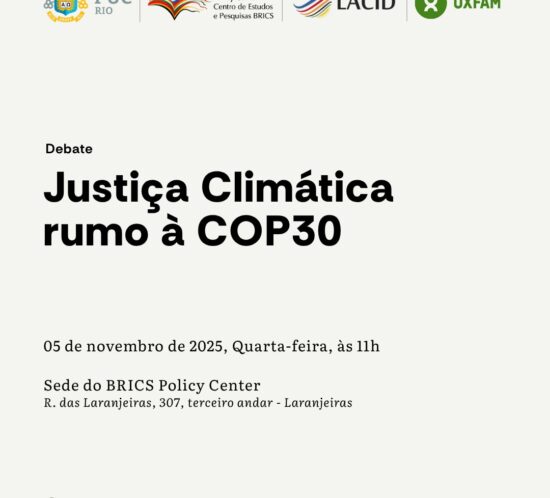 The BRICS Policy Center/PUC-Rio invites everyone to the debate “Climate Justice Towards COP30”, held in partnership with OXFAM, on November 5th at 11:00 AM, at the BPC headquarters in Laranjeiras. In...