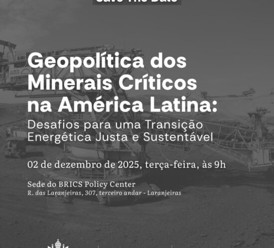 O BRICS Policy Center convida a todos as para o Evento "Geopolítica dos Minerais Críticos na América Latina: Desafios para uma Transição Energética Justa e Sustentável". O Seminário trará discussões...