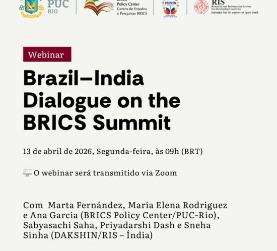 O BRICS Policy Center/PUC-Rio e o DAKSHIN/RIS (Índia) convidam para um webinar conjunto sobre as expectativas para a próxima Cúpula do BRICS. O evento será realizado no dia 13 de...