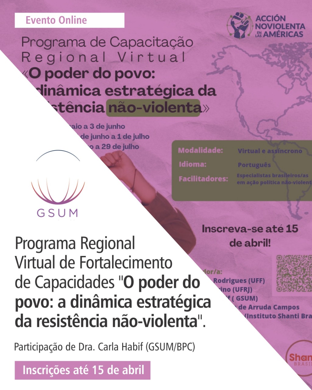 Liderado por um grupo internacional de estudiosos e profissionais no campo de estudos de paz e conflitos no Equador, Estados Unidos, Brasil, Costa Rica e Uruguai, o curso virtual é projetado para equipar os participantes com ferramentas práticas, conhecimento e conexões, com o objetivo de entender as complexidades dos conflitos dentro e fora das regiões fronteiriças; bem como os tipos de intervenção que podem ser empregadas para transformar esses conflitos pacificamente. Os participantes poderão interagir com uma variedade de especialistas e profissionais no campo da transformação pacífica de conflitos, construção da paz, refúgio e questões fronteiriças.
